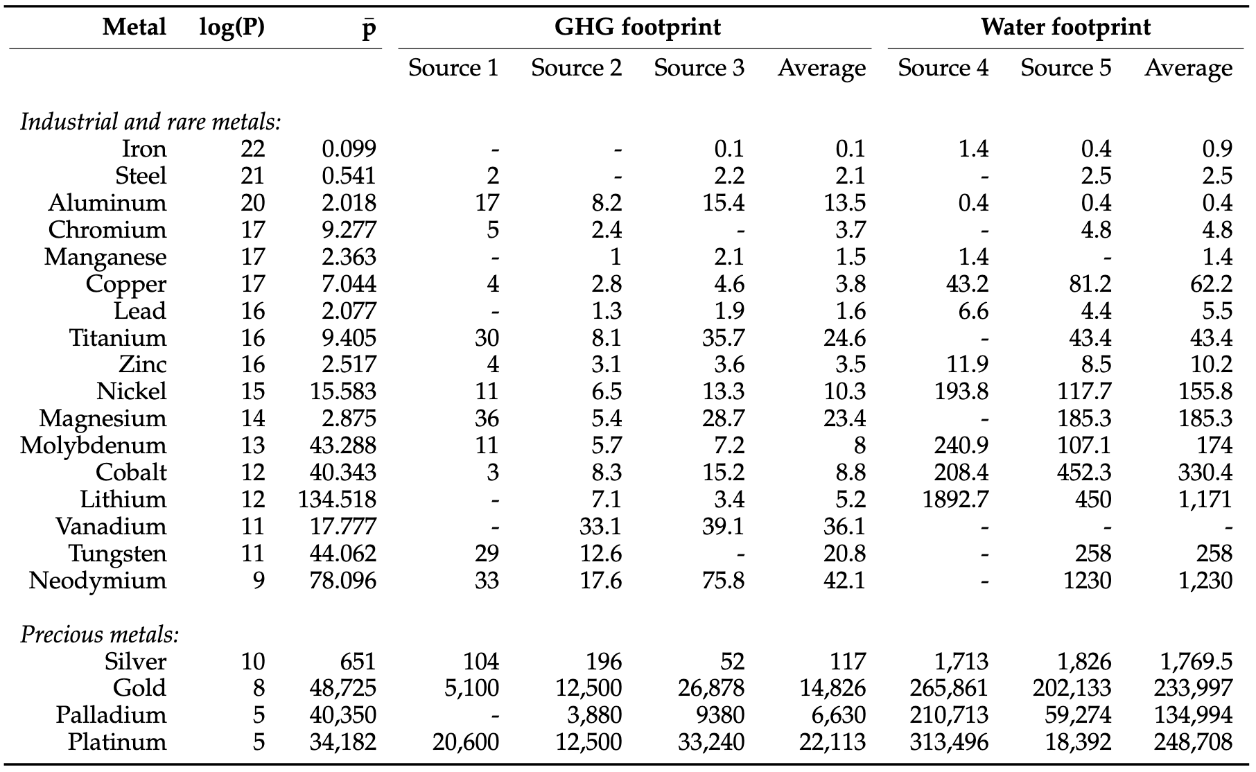 For commodities, it is feasible to assess the amount of GHG required for some activities (crop, metals). In the case of metals, the paper ESG Comes to Town gives some estimates: