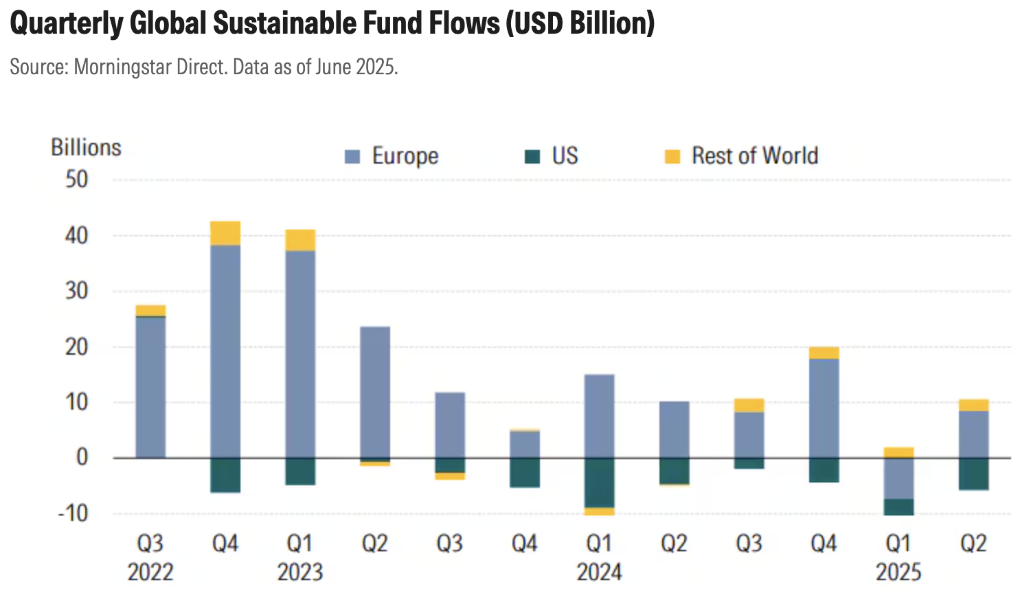 At the aggregate level, we can track the amount of money invested in so-called “green” funds. This is complicated because all funds have very different ways of being green. In 2022, Morningstar removed the ESG label of 1,200 funds.